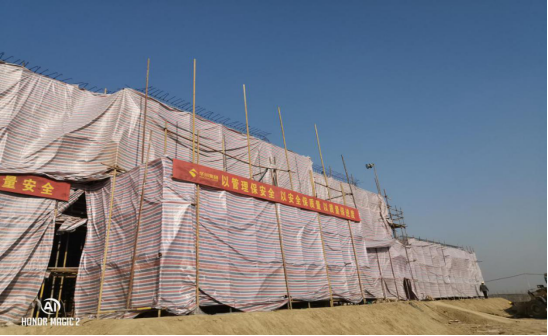為有效應(yīng)對(duì)冬季施工期間低溫影響,房建分部采用綜合蓄熱法施工,大面積砼主體結(jié)構(gòu)采用暖棚法施工,就地取材,選用保溫性能好的保溫材料,同時(shí)具有良好的防火性能,極大地保證了冬季施工的質(zhì)量。